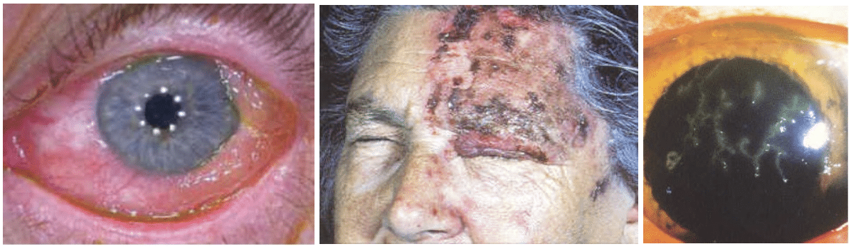 Middle: Herpes Zoster Ophthalmicus with nasociliary nerve involvement.