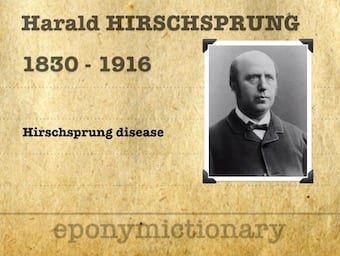 Harald Hirschsprung (1830 – 1916) was a Danish pediatrician. Eponym - Hirschsprung disease, congenital idiopathic aganglionosis with colonic dilatation
