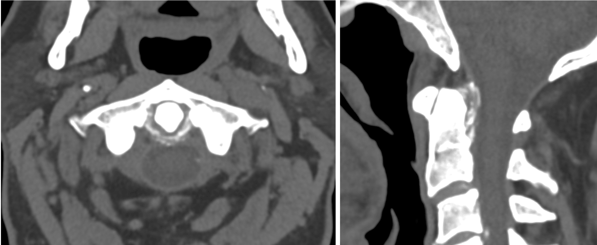 This CT is supportive of a diagnosis of crowned dens syndrome.