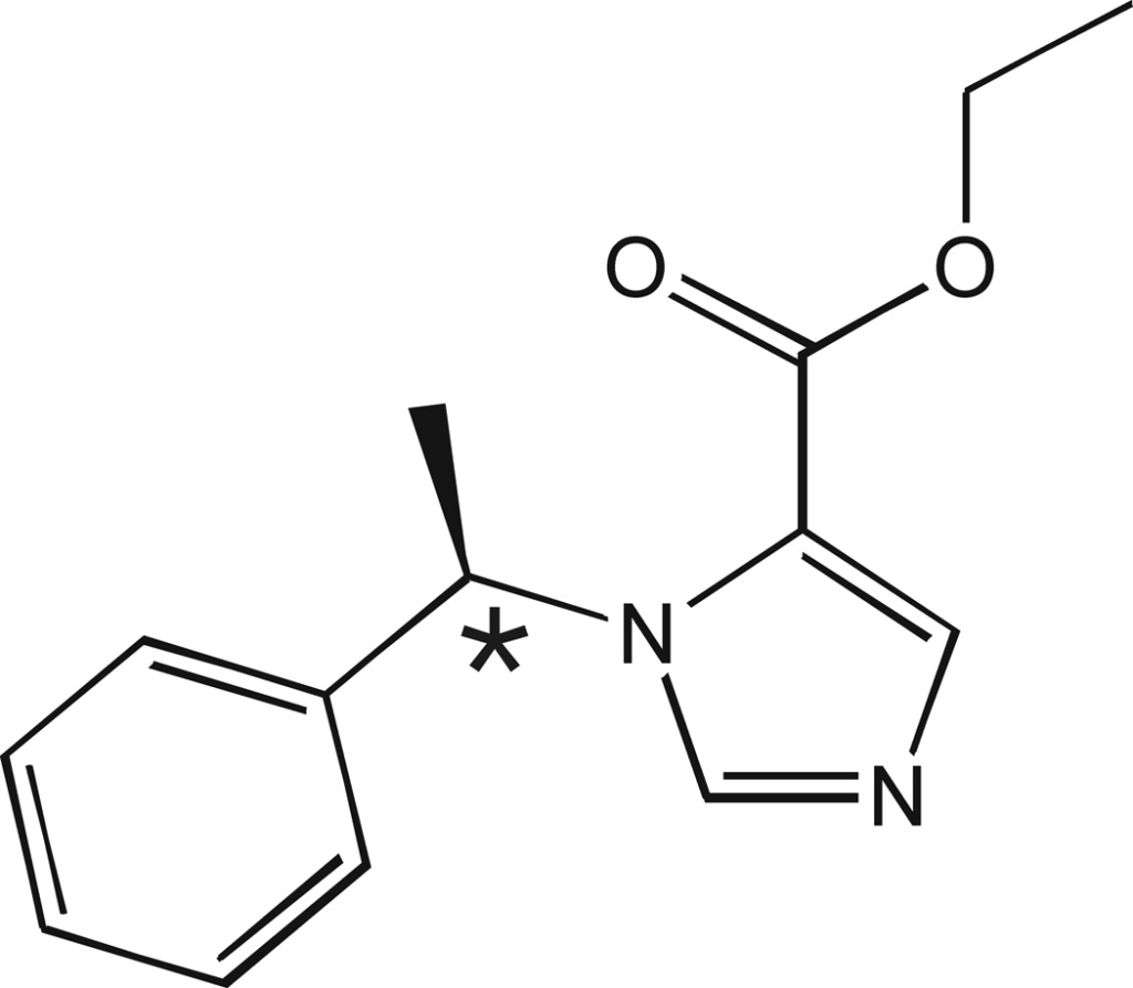 - It has a chiral center (* in figure) – the R(+) isomer of etomidate is ten times more potent than its S(−) isomer at potentiating GABA-A receptor activity