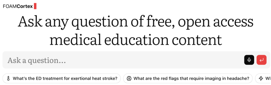 FOAM Cortex has been launched. A new Free AI-powered clinical search tool built by emergency medicine (EM) physicians specifically for EM and critical care use at the point of care.