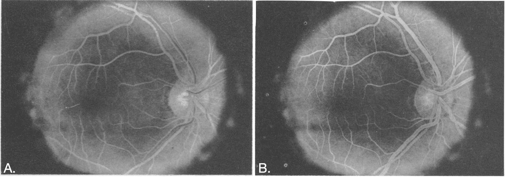 1961 – Harold R. Novotny and David L. Alvis published a practical method for studying retinal blood flow in humans using intravenous fluorescein and serial fundus photography. In their Circulation report they describe a Zeiss fundus camera with electronic flash and define the optical requirements for fluorescein imaging (blue excitation around 490 nm and green emission around 520 nm). In a darkened room they rapidly injected 5 mL of 5% fluorescein in sodium bicarbonate (Fluorescite) into an antecubital vein, and photograph the retinal circulation at 12-second intervals for ~3½ minutes. This simple method captured distinct arteriolar and venous filling phases and revealed vascular detail not readily seen with routine ophthalmoscopy or standard fundus photographs.