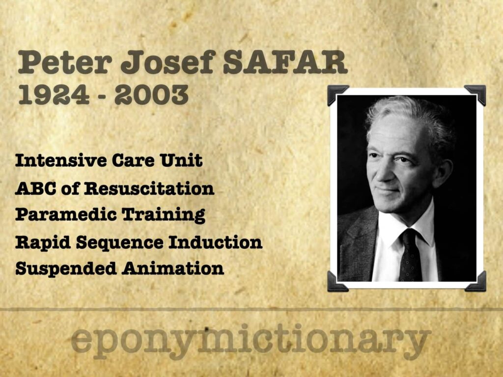 Peter Safar: Peter Josef Safar (1924-2003) was an Austrian physician and innovator, recognised as the “father of modern resuscitation” and “founder of critical care medicine.” He was the driving force behind the development of cardiopulmonary resuscitation (CPR) and the establishment of intensive care units.