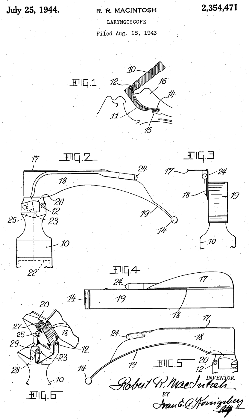 - Macintosh RR. Laryngoscope blades. Lancet 1944; 243(6293): 485