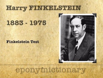A test for diagnosing de Quervain’s tenosynovitis, or snapping thumb syndrome. First described in 1930 by Harry Finkelstein (1883-1975)