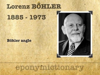 Lorenz Böhler (1885-1973) Austrian Physician and Surgeon. Eponymously associated with Böhler angle – a measurement on a lateral foot x-ray to determine calcaneal injuries