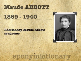 Maude Elizabeth Seymour Abbott (1869 - 1940) was a Canadian physician, cardiologist and pathologist. Rokitansky-Maude Abbott syndrome (1924)