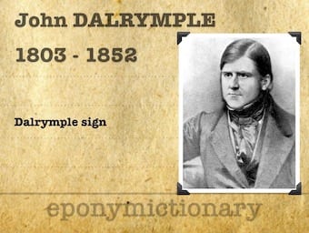 John Dalrymple (1803-1852) English surgeon and ophthalmologist. Dalrymple sign (1952) relating to Graves disease; dissection and histology of first case of multiple myeloma with Bence Jones (1846)