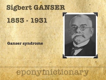 Sigbert Josef Maria Ganser (1853 – 1931) was a German psychiatrist. 'Ganser syndrome' an hysterical disorder he first described in 1898