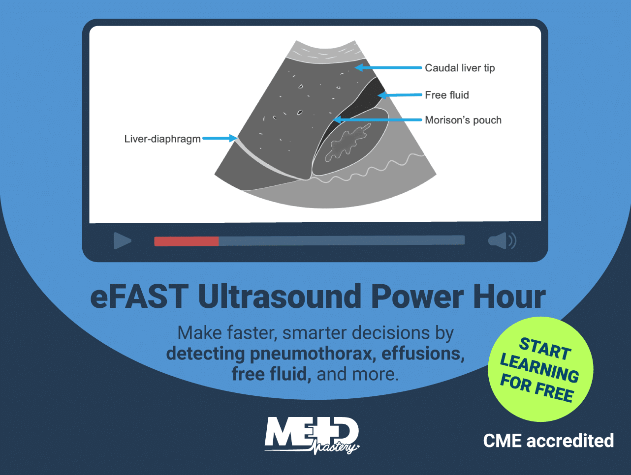 - Requires >250 mL free fluid to collect in Morison’s pouch for a positive result